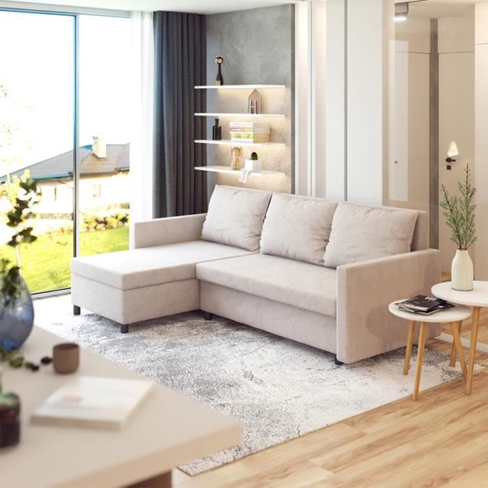 canape d angle convertible selefer beige coffre de rangement integre surface de couchage 199x133 cm cdiscount maison