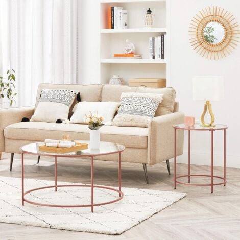 vasagle table basse ronde dessus de table en verre trempe cadre en acier table de salon bout de canape decoratif rose gold lgt021a02 rose gold