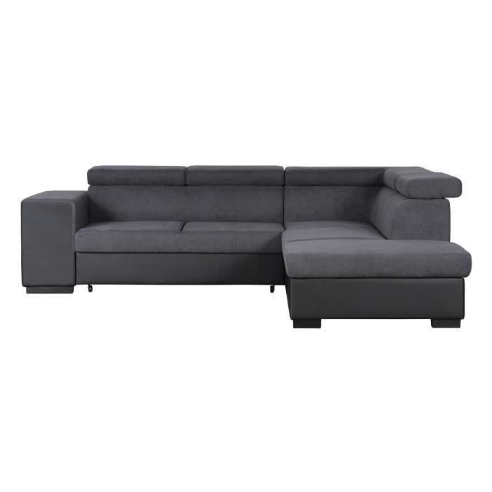 valencia canape d angle panoramique en u convertible avec coffre 7 places style contemporain gauche couleur noir gris cdiscount maison