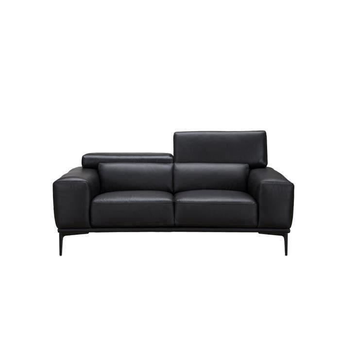 jake canape contemporain 2 places tetieres ajustables noir cuir de vachette l 182 x p 107 x h 91 cm cdiscount maison