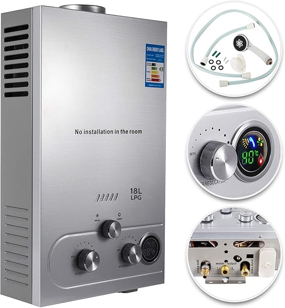 vevor chauffe eau au gaz lpg lng chauffe eau au propane chauffe eau instantane a gaz naturel en acier inoxydable chauffage a gaz sans reservoir pomme de douche 18l 36kw lpg amazon fr bricolage