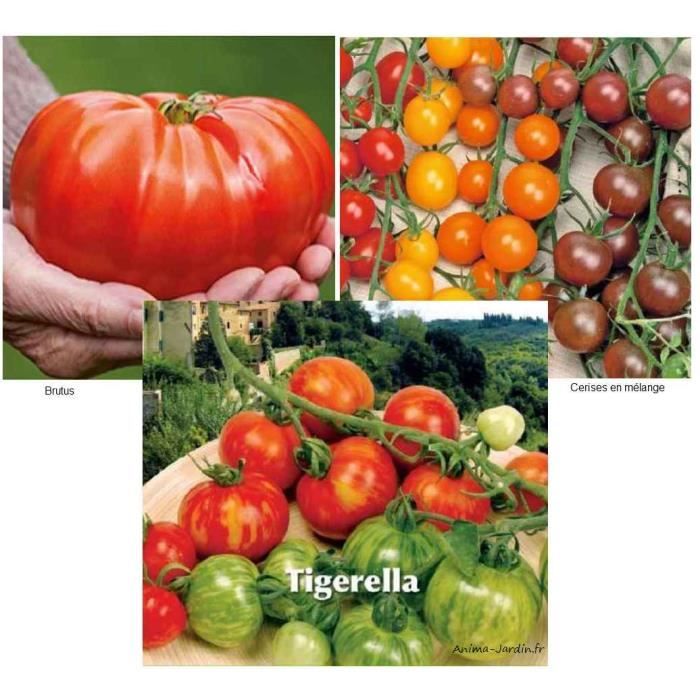 lot 3 varietes tomates tigerella tomates brutus tomates cerises 4 varietes en sachets separes cdiscount jardin