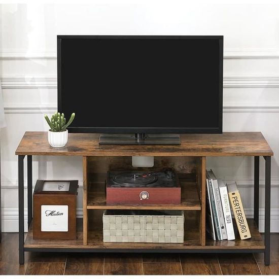 vasagle meuble tv support television avec compartiments de rangement ouverts style industriel 110x40x50 cm marron ltv39bx cdiscount maison
