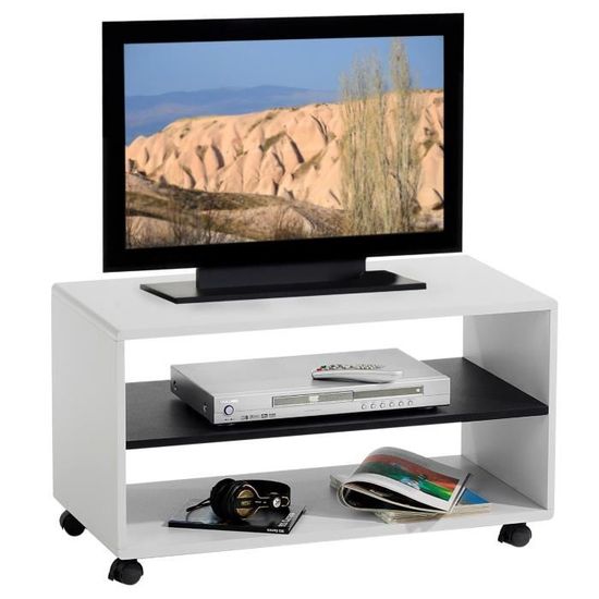 meuble tv etagere sur roulettes atlanta en mdf coloris blanc et noir mat cdiscount maison