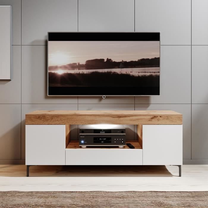 meuble tv avec led banc tv avec led gusto 137 cm lancaster blanc mat style contemporain cdiscount maison