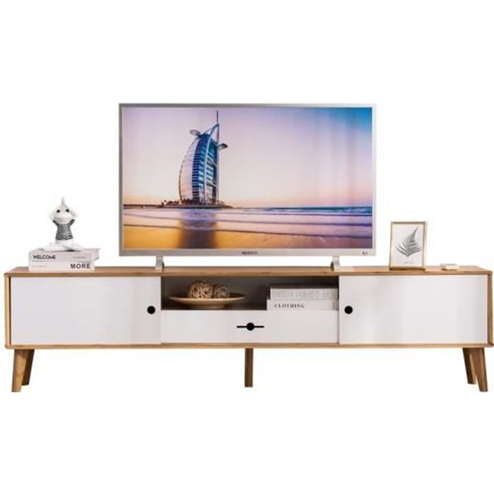 meuble tv rikke 160 cm chene wotan sans led cdiscount maison