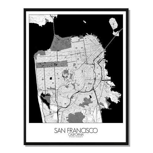 san francisco carte map n b 40x50cm maisons du monde