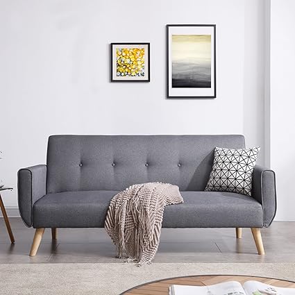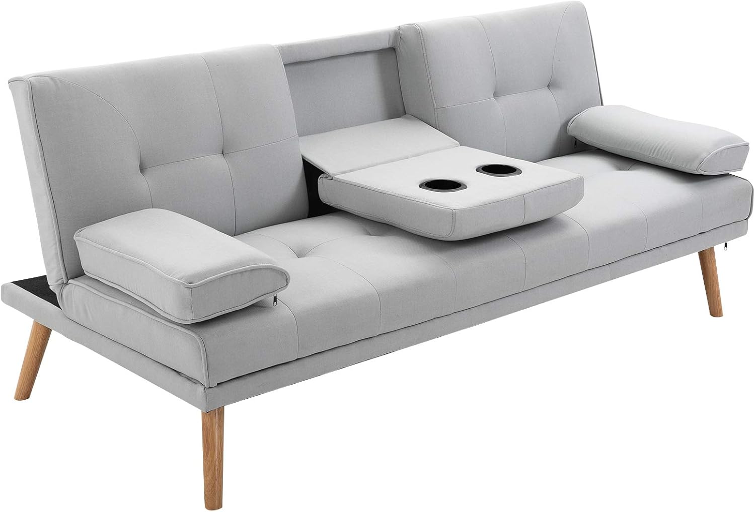 homcom canape convertible 3 places design scandinave inclinaison dossier reglable 3 niveaux dossier centrale rabattable 2 porte verres bois massif lin gris clair amazon fr cuisine maison