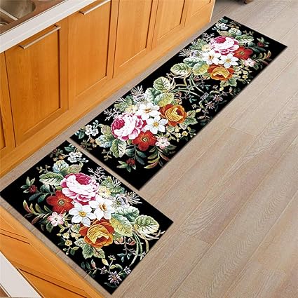 treer tapis de cuisine antiderapant et lavable vintage style europeen imprime pivoine paillasson d entree devant evier tapis de sol tapis pour chambre a coucher salon 40x60cm noir amazon fr cuisine maison