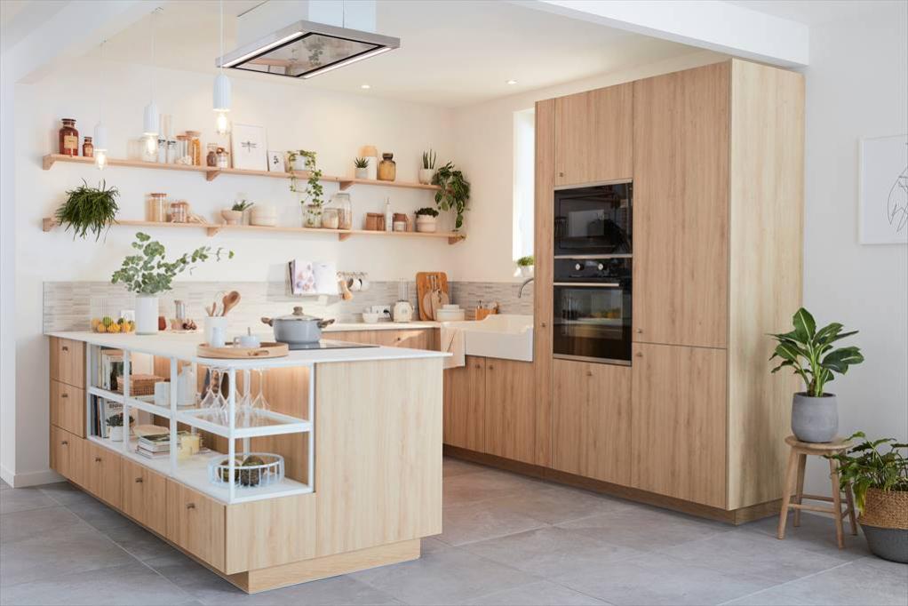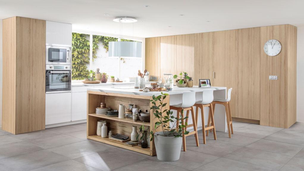 cuisine de la semaine bleu blanc bois chez un cuisiniste