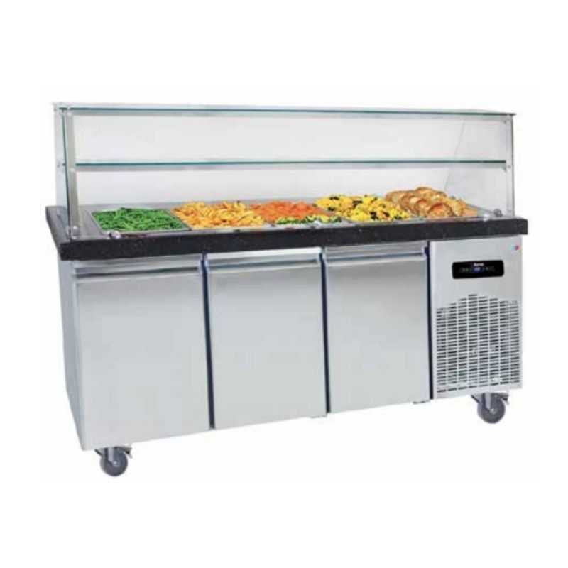 buffet bain marie chauffant 5 bacs avec desserte refrigeree 3 portes gn 1 1 fourniresto