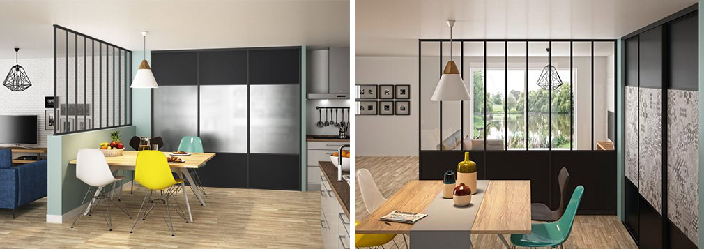 ambiance dressing verriere fixe modele authentique anthracite sable maison habitat amenagement interieur indoor a cuisine semi ouverte maison verriere