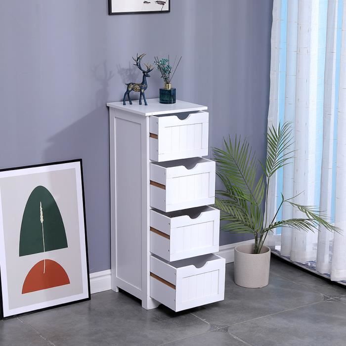 meuble colonne de rangement avec 4 tiroirs en bois pour cuisine du salon couloir et salle de bain meubles cuisine blanc cdiscount maison