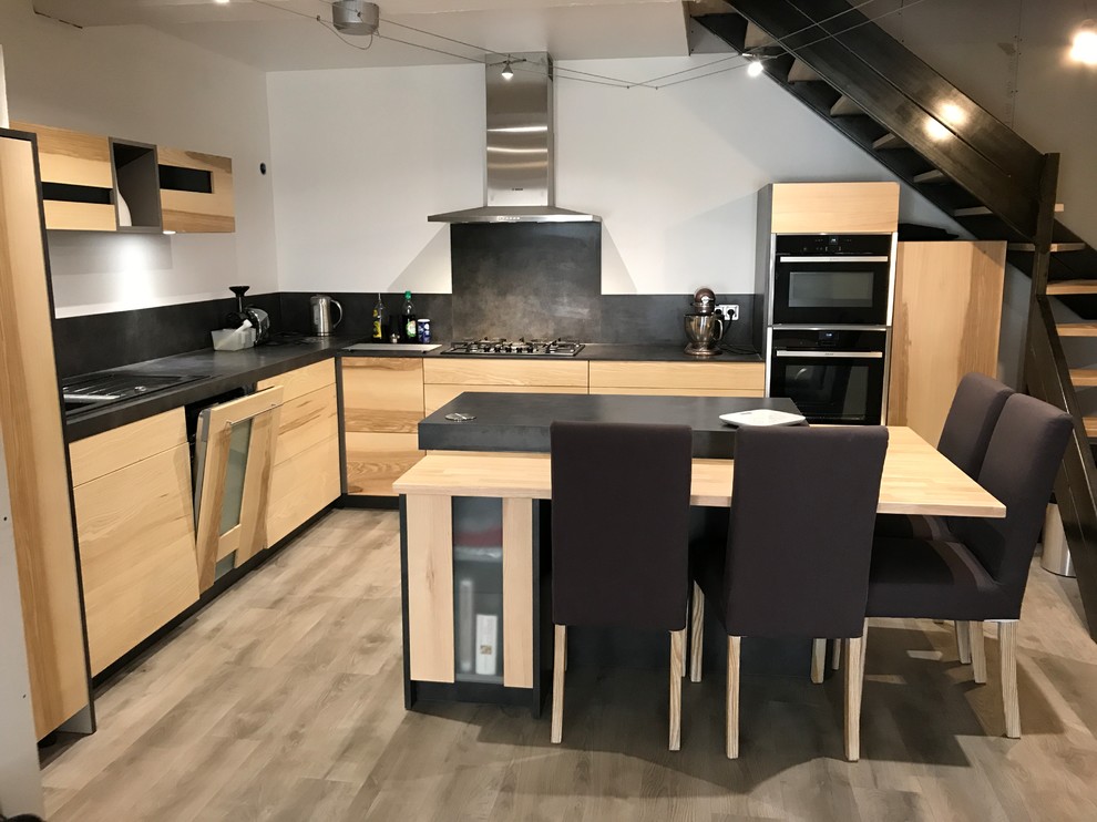 du gris soi mat allie a un chene authentique une alliance tout en douceur rehausse par le noir des elements de detail jeansebastien home kitchen home decor