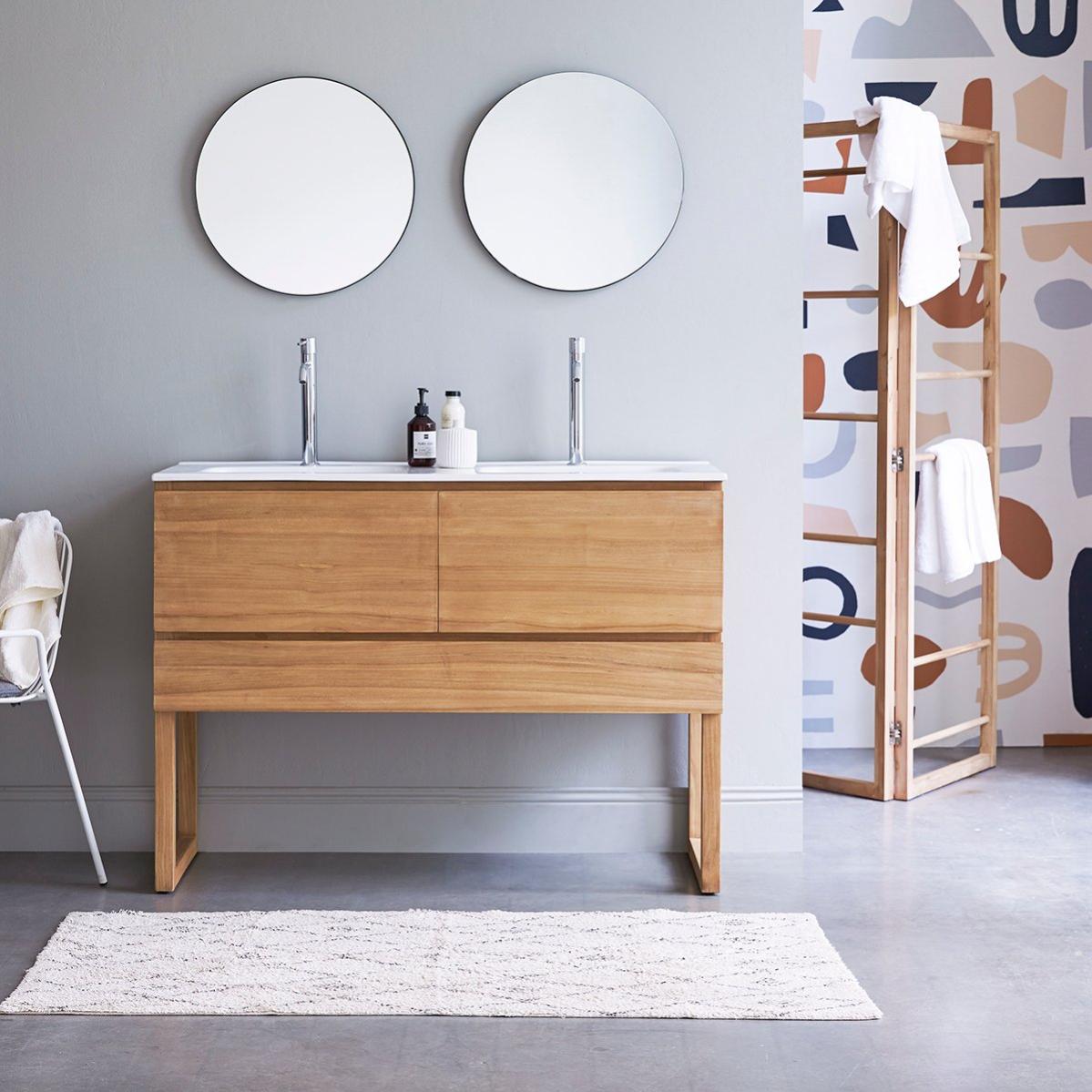 meuble salle de bain en bois teck massif et ceramique 120 edgar leroy merlin