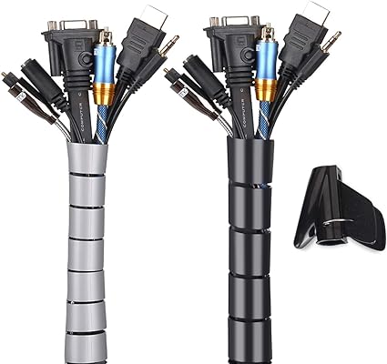 cache cable 2 pack flexible range cable mosotech 2x1 5m pe cable rangement organisateur de cable pour ranger ou cacher les cables gaine pour cables 2 6cm o et 2 2cmo noir et gris amazon fr high tech