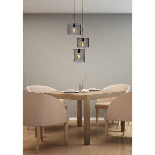 suspension 3 points lumineux en metal noir et bois baskett maisons du monde