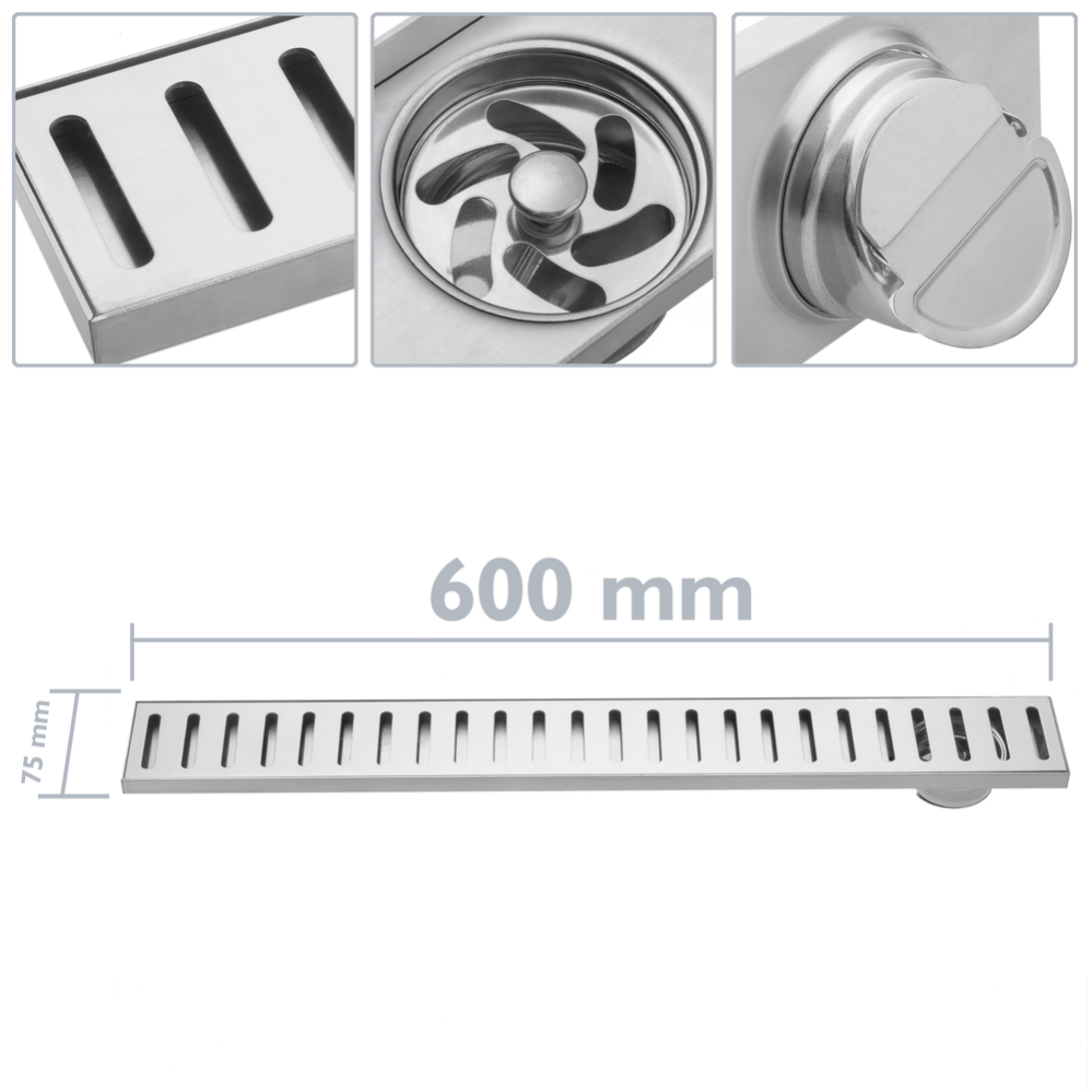 gouttiere de drainage 7 5x60cm avec grille en acier inoxydable mat leroy merlin