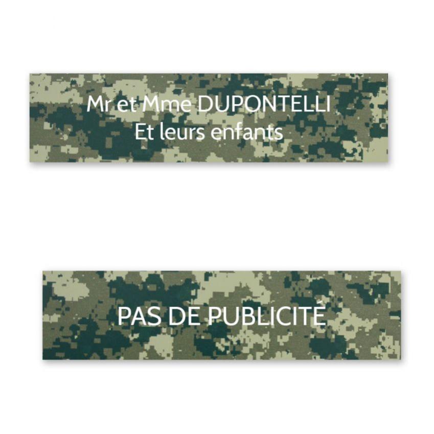 plaque nom plaque stop pub pour boite aux lettres format edelen 99x24mm camo vert lettres blanches 2 lignes leroy merlin