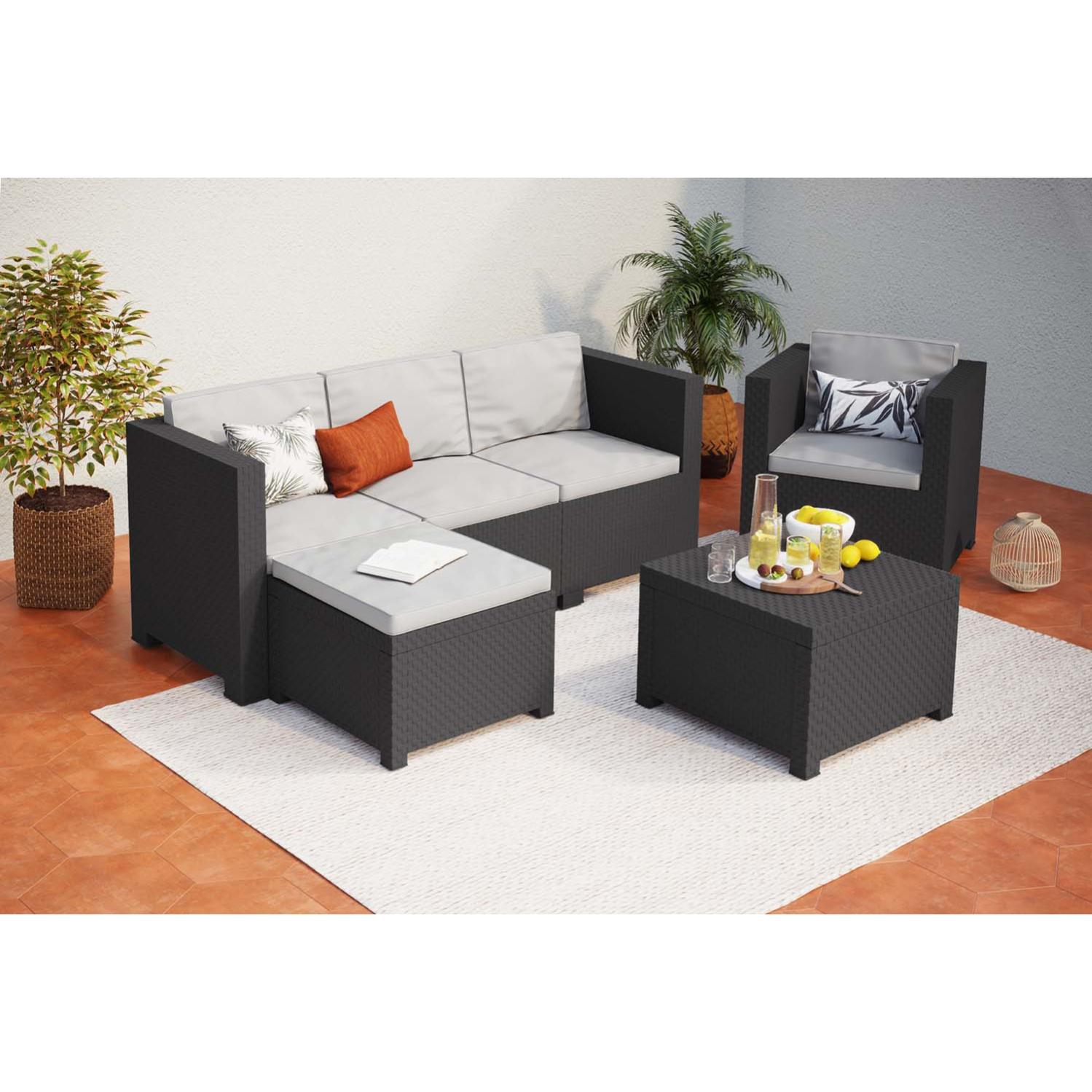 rio salon de jardin en resine tressee 5 places gris noir leroy merlin