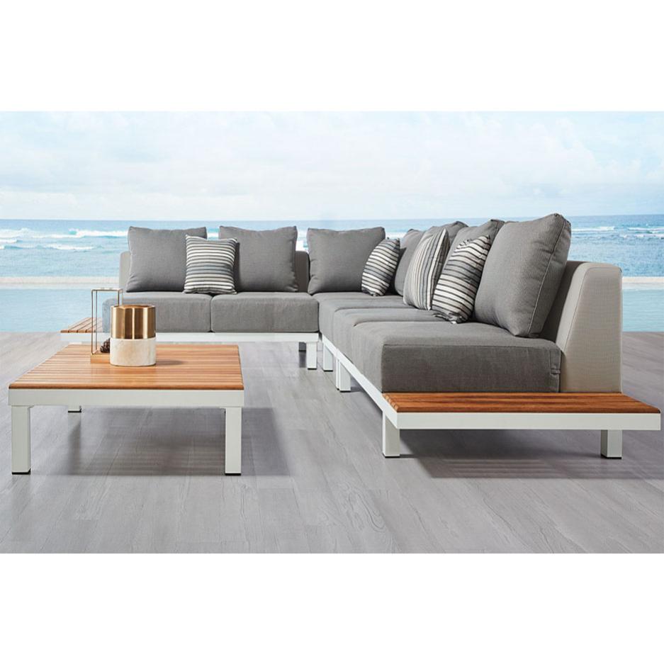 salon de jardin d angle en aluminium et en teck york cosy leroy merlin