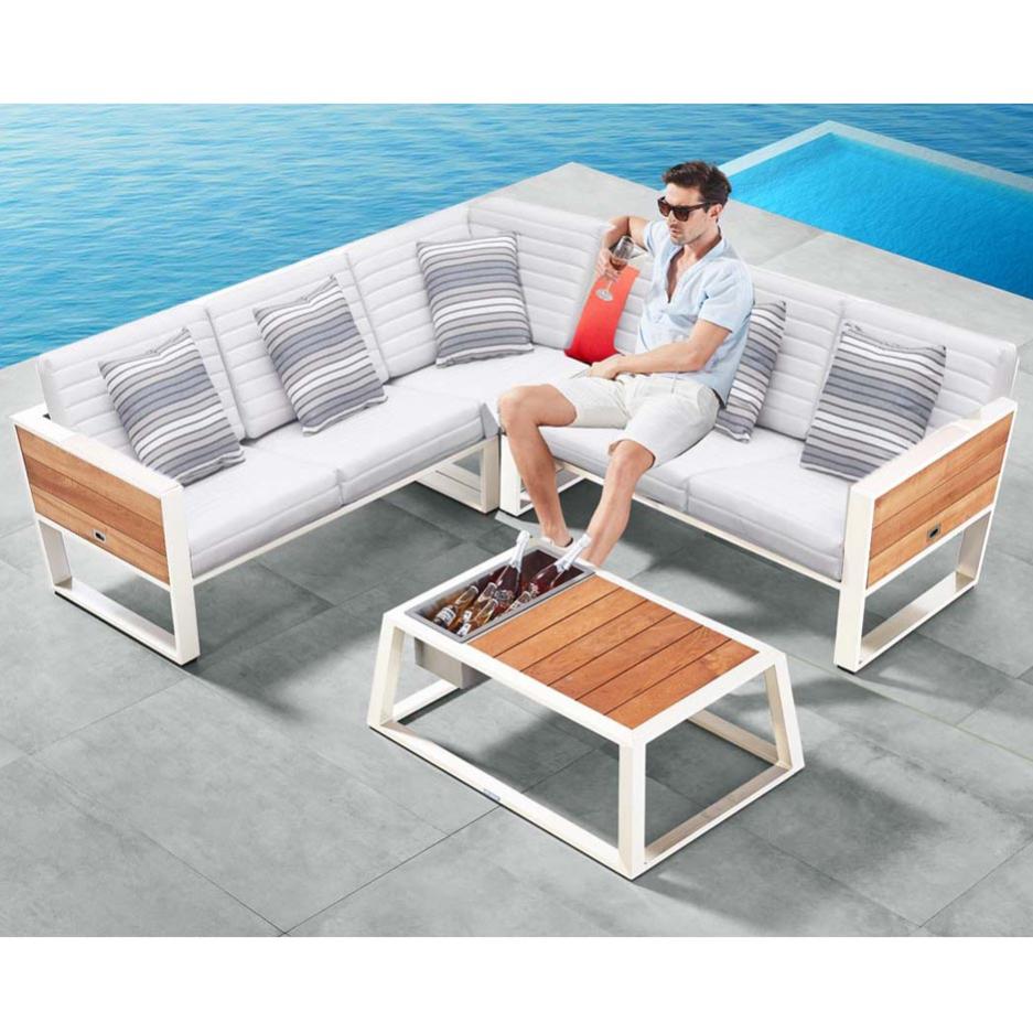 salon de jardin d angle en aluminium et en teck lovy cosy leroy merlin