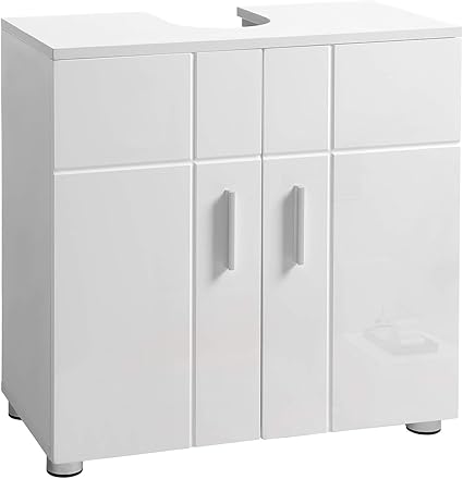 vasagle meuble sous lavabo placard sous vasque de salle de bains avec double porte etagere reglable charnieres avec amortisseur pieds reglables 60 x 30 x 60 cm portes en blanc brillant bbk02wt amazon fr