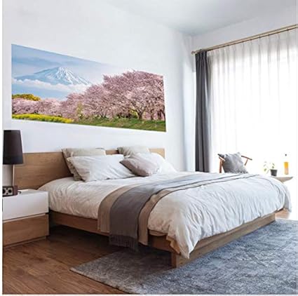 stickers muraux 3d japon sakura lit tete de lit paysage peintures murales autocollant chambre papier peint stickers murale art affiche decoration de la maison 90x180cm amazon fr bricolage
