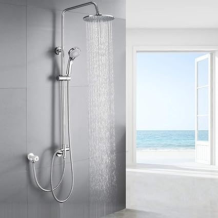 auralum colonne de douche sans robinetterie avec pomme de douche pluie et douchette 3 fonctions bras de douche pivotant ensemble de douche de salle de bain reglable en hauteur chrome amazon fr bricolage