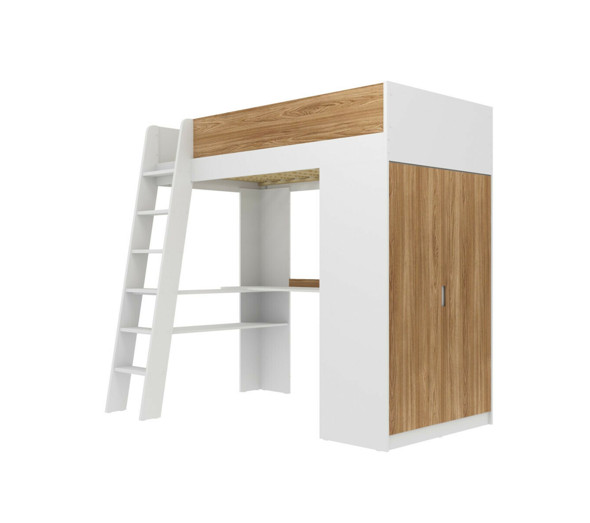 pack lit avec matelas mezzo blanc et bois 90x190 cm lit superpose mezzanine but