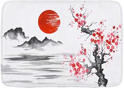 conicixi tapis de bain montagne de la peinture japonaise traditionnelle sun sakura lake du japon art sumi e antiderapant microfibre 45x75cm la douche et la salle de bain amazon fr cuisine maison