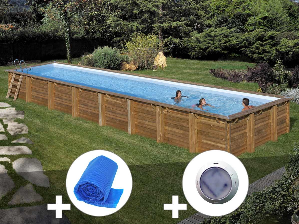 kit piscine bois sunbay cardamon 12 10 x 4 18 x 1 46 m bache a bulles spot leroy merlin