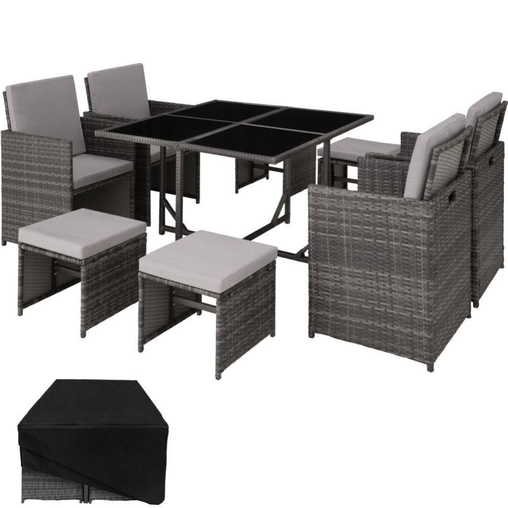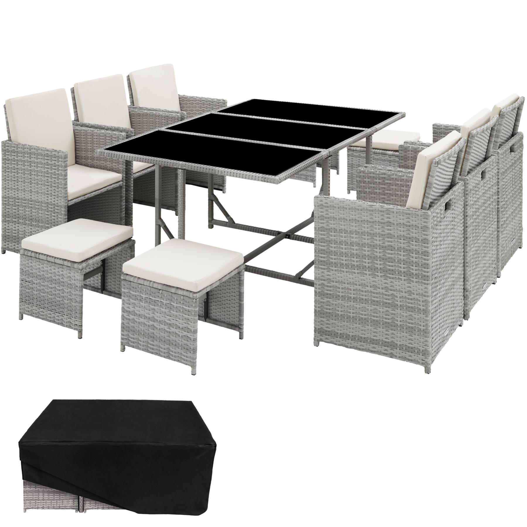 tectake salon de jardin malaga 10 places avec housse de protection gris clair leroy merlin