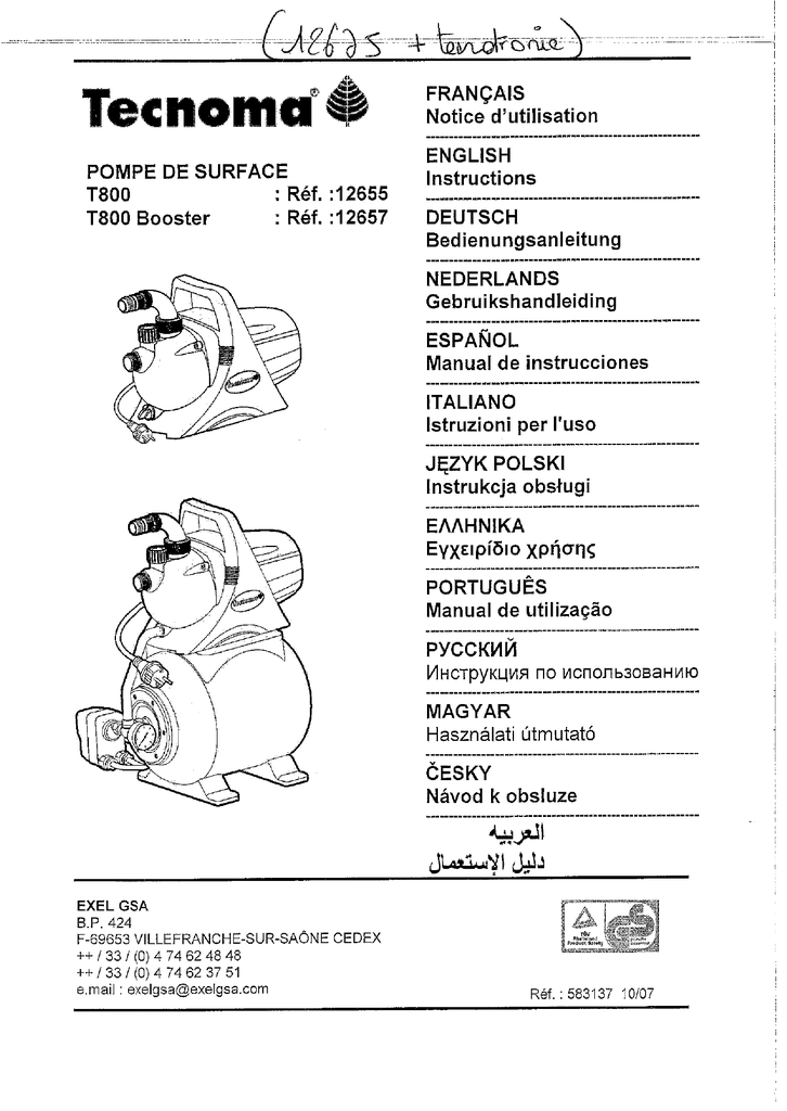 castorama pompe de surface tecnoma t800 k7 user guide manualzz