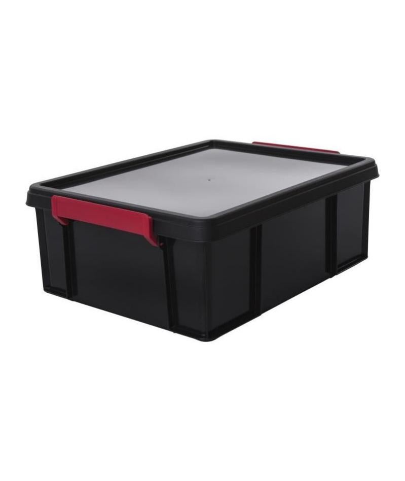 iris ohyama boite de rangement empilable avec couvercle multi box mbx 18 plastique noir rouge et transparent 18 l leroy merlin