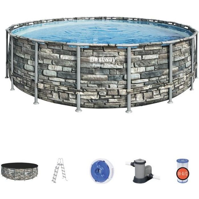piscine hors sol tubulaire bestway power steel imitation pierre 549x132 cm epurateur a cartouche de 5 678 l h bache et echelle cdiscount jardin