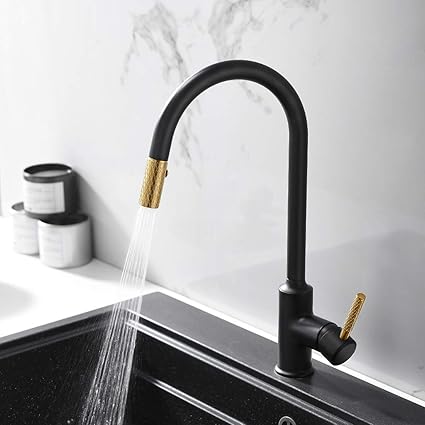 fhming robinet de cuisine extensible dore et noir robinet de cuisine avec douchette extractible robinet mitigeur pivotant a 360 en laiton amazon fr bricolage