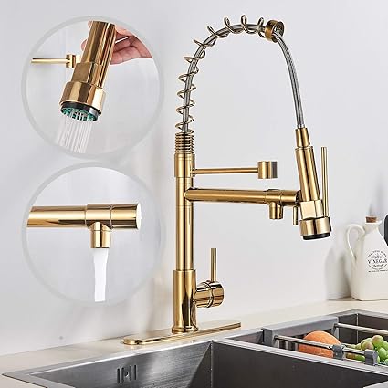 rozin robinet de cuisine dore corps en laiton 360 bec rotatif dispositif de pulverisation plateau de montage avec plaque de recouvrement de 9 5 accessoires de montage inclus amazon fr bricolage