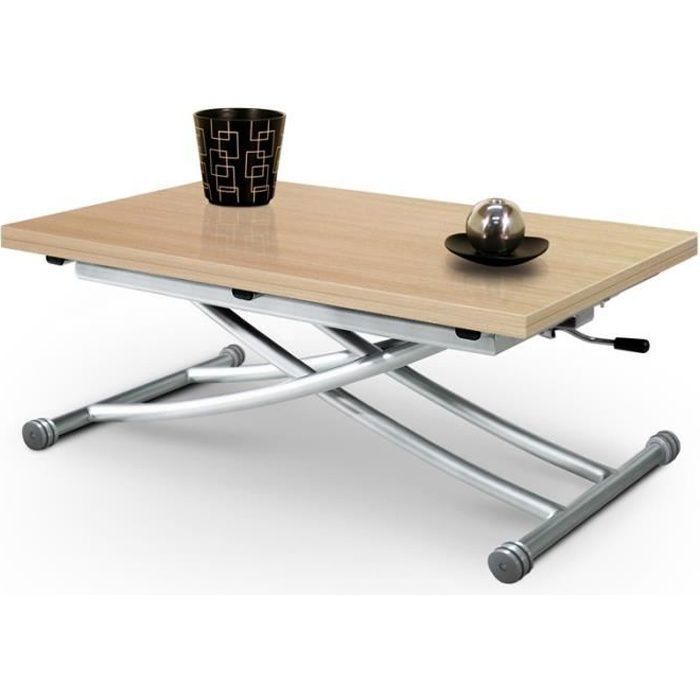 table relevable 2 en 1 lilian imitation chene et chrome table basse but