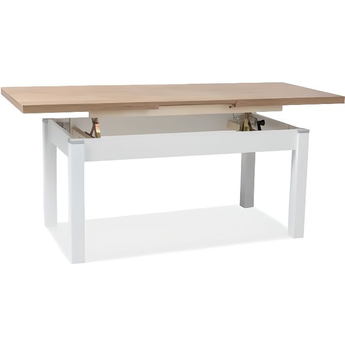 table basse plateau relevable soa bois imitation hetre plateau blanc