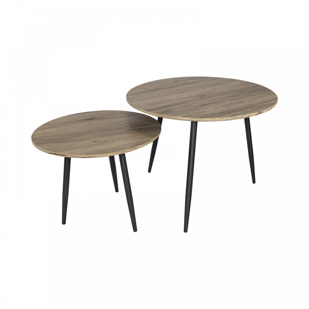 table basse ronde style industriel dim o 80 x 45h cm metal noir panneaux particules imitation bois table basse et d appoint salon meuble gifi