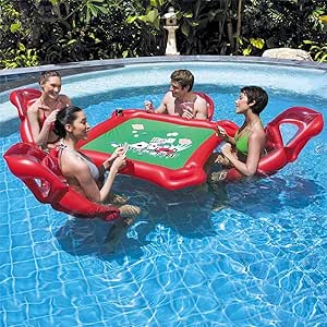 weelion table de poker gonflable rangee flottante avec 4 chaises piscine interieure et exterieure lit flottant jouets gonflables pour enfants avec pompe a air amazon fr cuisine maison