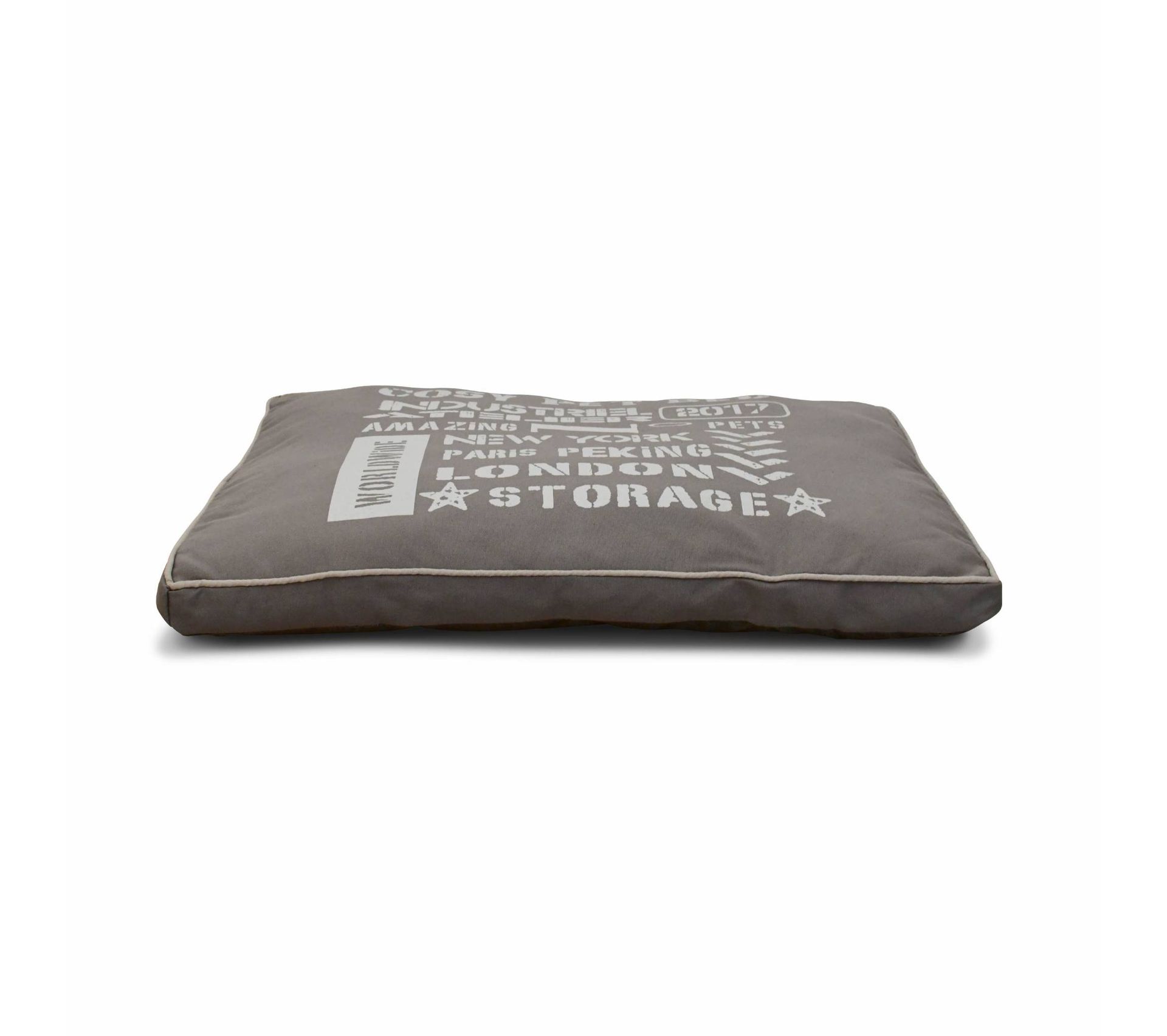 coussin rectangulaire gris entierement dehoussable avec noms de villes pour chien moyen 79x57x8 cm but