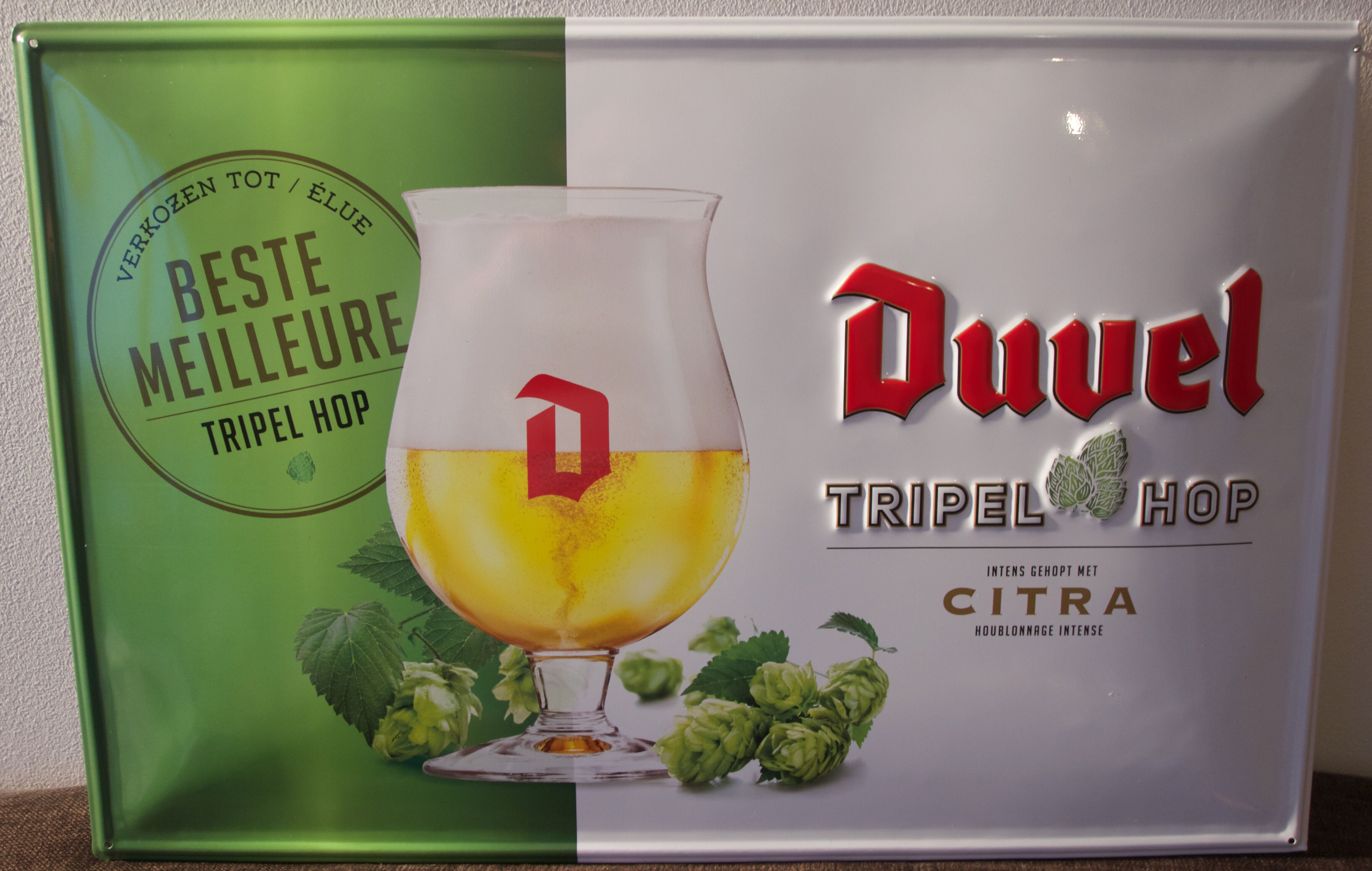 tole emaillee de publicite pour la marque de biere belge duvel selency