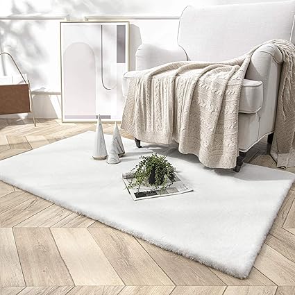 hetooshi tapis en fausse fourrure de lapin tapis pour le salon antiderapant tapis tapis shaggy doux couleur unie solide tapis de rampant chambre imitation fourrure de lapin tapis blanc 80 x 120 cm amazon fr cuisine