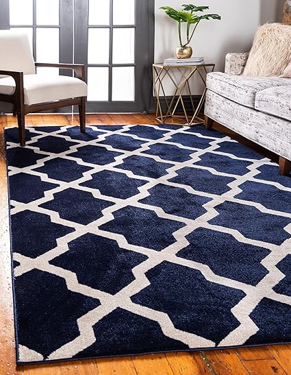 unique loom tapis moderne geometrique a motif treillis bleu marine 152 x 253 cm amazon fr cuisine maison