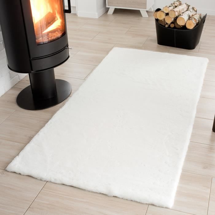 tapiso dolly tapis salon ado design moderne blanc fausse fourrure shaggy plaid 100 x 200 cm achat vente tapis cdiscount