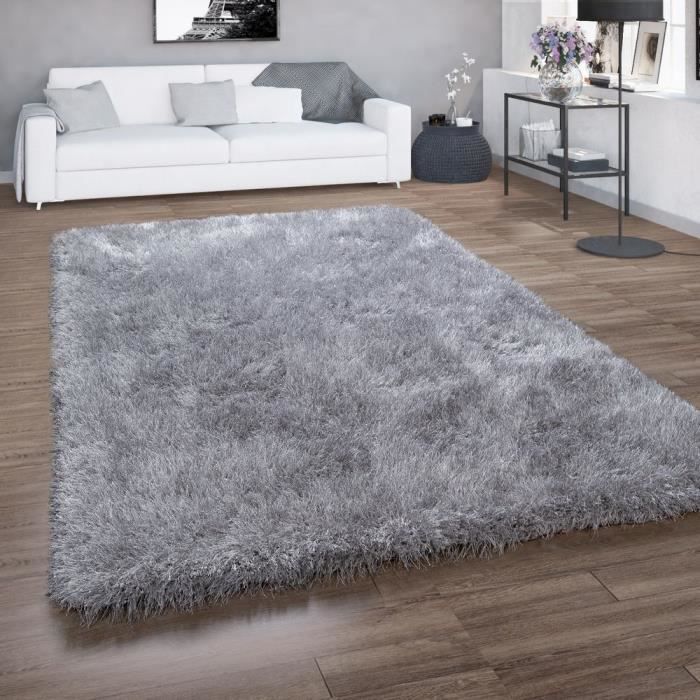tapis poils longs pour salon shaggy avec fil brillant uni gris 80x150 cm cdiscount maison