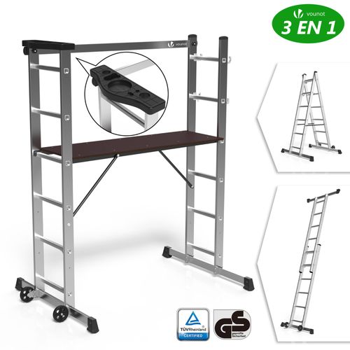 jago echafaudage et echelle multifonction 4 en 1 mobile reglable en hauteur 46 102 cm en aluminium plate forme de travail cdiscount bricolage