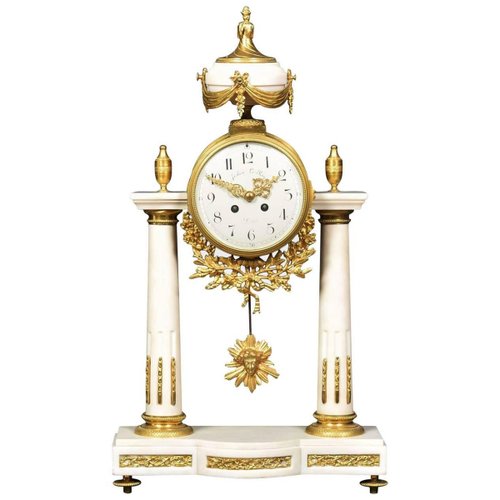 horloge de manteau antique en marbre blanc par julien le roy paris en vente sur pamono